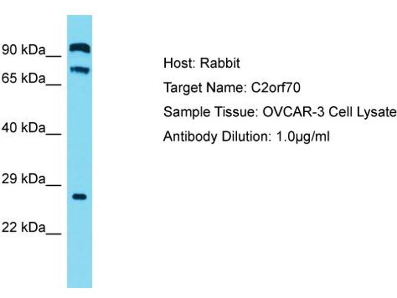 This is a rabbit polyclonal antibody against C2orf70. It was validated on Western Blot.