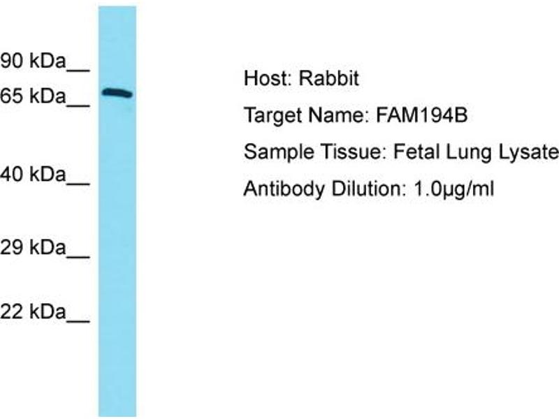 This is a rabbit polyclonal antibody against FAM194B. It was validated on Western Blot.