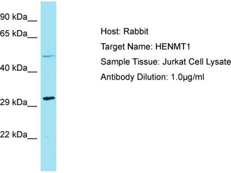 This is a rabbit polyclonal antibody against HENMT1. It was validated on Western Blot.