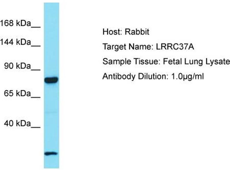 This is a rabbit polyclonal antibody against LRRC37A. It was validated on Western Blot.