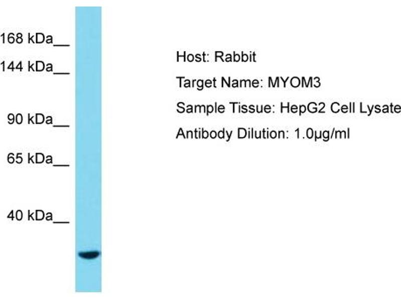 - This is a rabbit polyclonal antibody against MYOM3. It was validated on Western Blot.