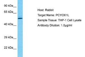 This is a rabbit polyclonal antibody against PCYOX1L. It was validated on Western Blot.