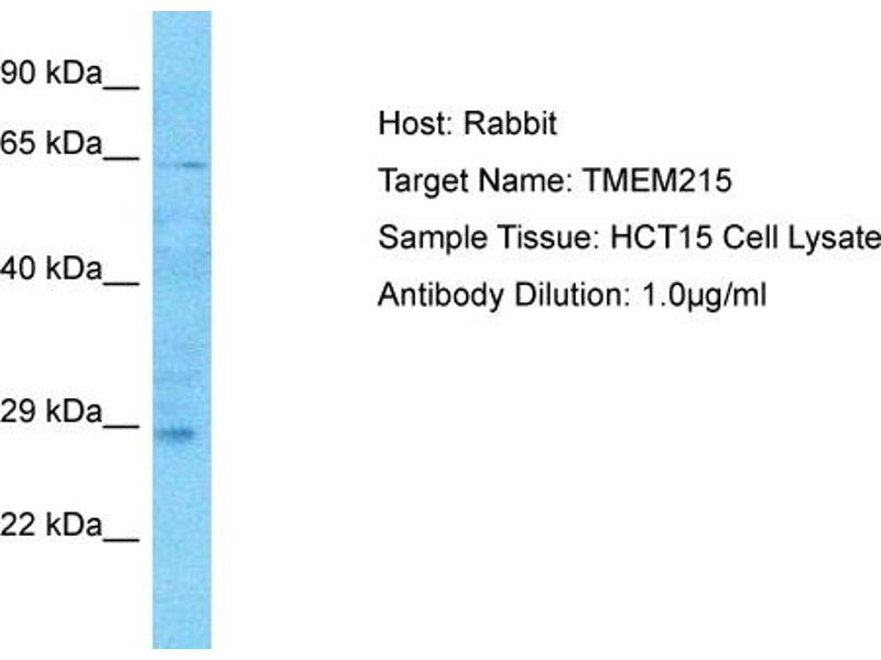 - This is a rabbit polyclonal antibody against TMEM215. It was validated on Western Blot.