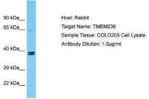 This is a rabbit polyclonal antibody against TMEM236. It was validated on Western Blot.