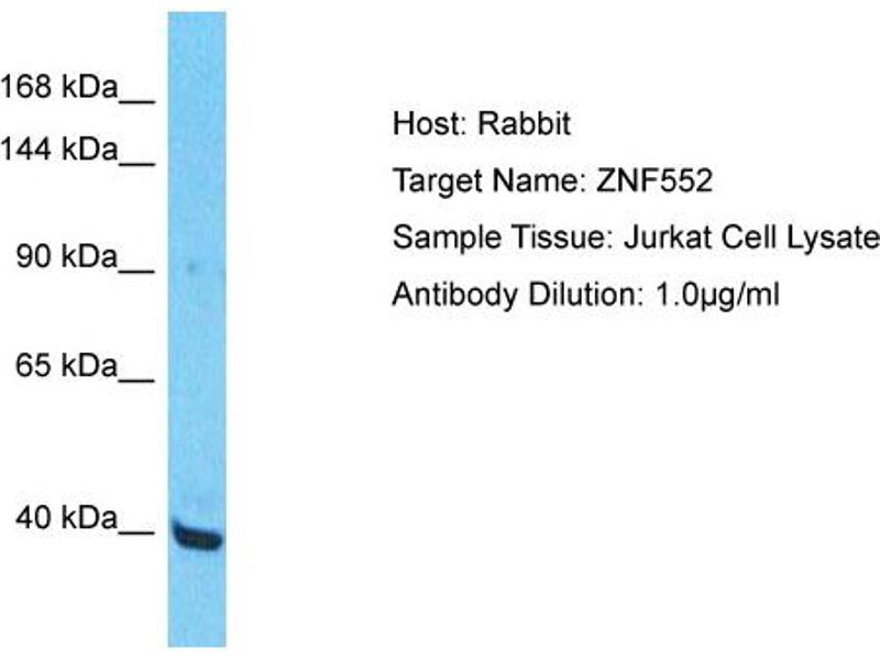 The immunogen is a synthetic peptide directed towards the middle region of Human ZNF552