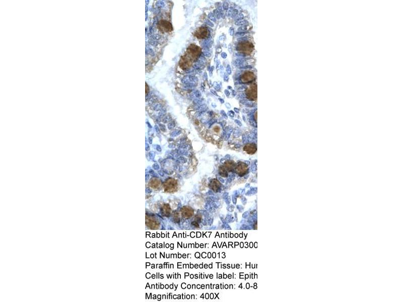 - The immunogen is a synthetic peptide directed towards the C terminal region of human CDK7