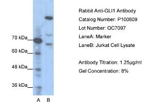 - This is a rabbit polyclonal antibody against GLI1. It was validated on Western Blot using a cell lysate as a positive control.