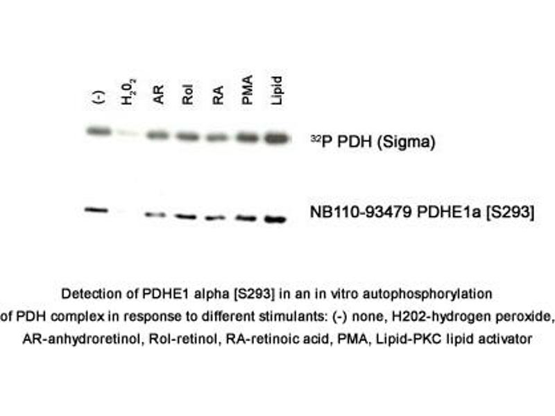 - Reacts with PDHE1 alpha phosphorylated Serine 293 from human, mouse and rat