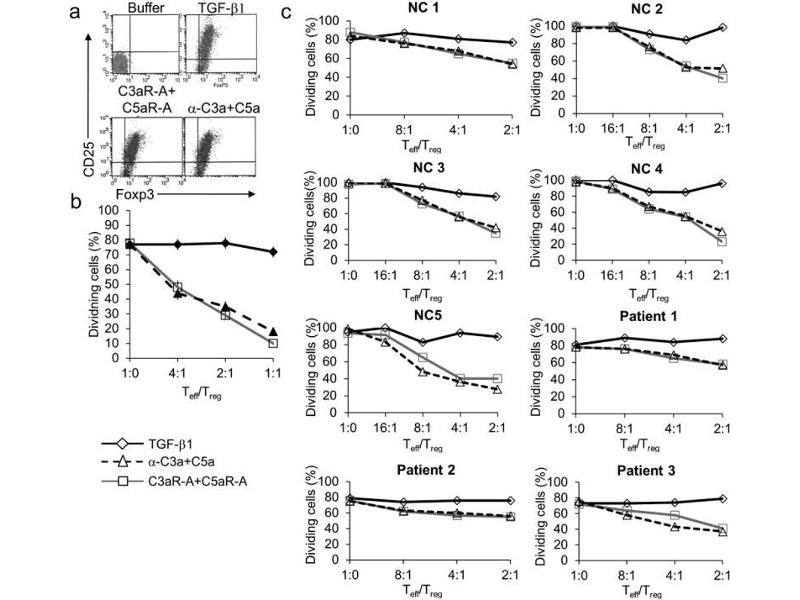 : "Absence of signaling into CD4⁺ cells via C3aR and C5aR enables autoinductive TGF-β1 signaling and induction of Foxp3⁺ regulatory T cells." in: Nature immunology, Vol. 14, Issue 2, pp. 162-71, (2013) (PubMed).