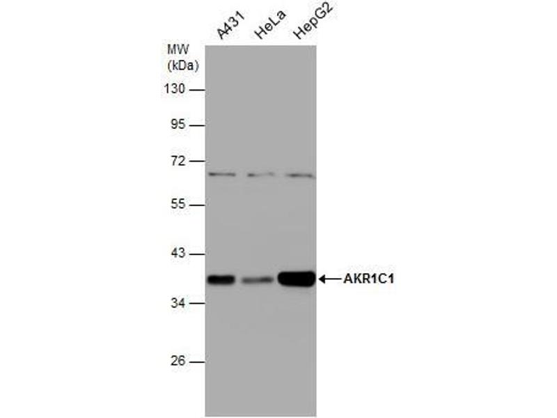Positive Control: mouse liver , A549 , AKR1C1-transfected 293T