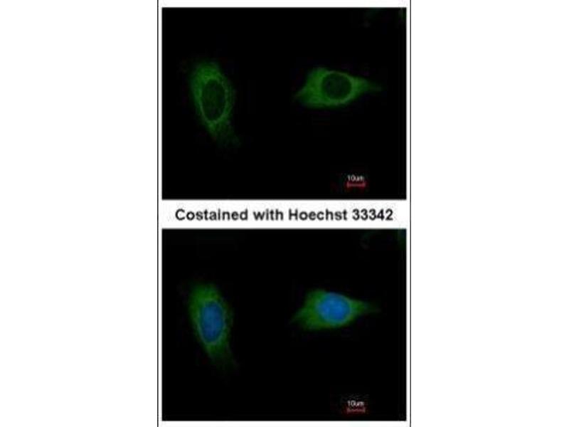 - Carrier-protein conjugated synthetic peptide encompassing a sequence within the C-terminus region of human EVC2. The exact sequence is proprietary.