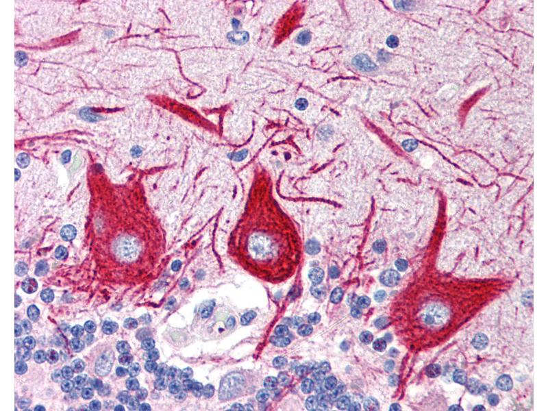Usage: Immunohistochemistry: This antibody was validated for use in immunohistochemistry on a panel of 21 formalin-fixed, paraffin-embedded (FFPE) human tissues after heat induced antigen retrieval in pH 6.0 citrate buffer. After incubation with the primary antibody, slides were incubated with biotinylated secondary antibody, followed by alkaline phosphatase-streptavidin and chromogen. The stained slides were evaluated by a pathologist to confirm staining specificity. The optimal working concentration for this antibody was determined to be 10 μg/mL. -
