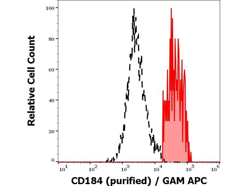 The mouse monoclonal antibody 12G5 recognizes an extracellular epitope of CD184, a 45 kDa G-protein-linked CXC chemokine receptor widely expressed on blood and tissue cells.