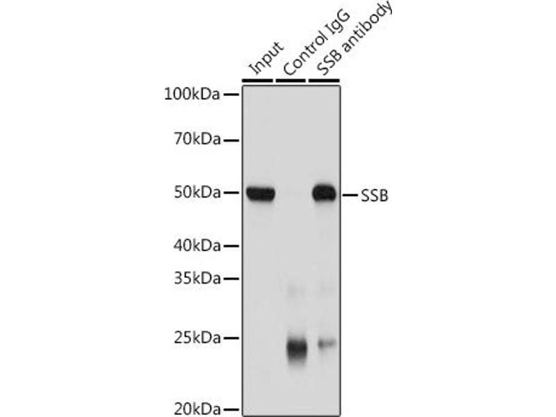 The protein encoded by this gene is involved in diverse aspects of RNA metabolism, including binding and protecting poly(U) termini of nascent RNA polymerase III transcripts from exonuclease digestion, processing 5' and 3' ends of pre-tRNA precursors, acting as an RNA chaperone, and binding viral RNAs associated with hepatitis C virus. Autoantibodies reacting with this protein are found in the sera of patients with Sjogren syndrome and systemic lupus erythematosus. Alternative promoter usage results in two different transcript variants which encode the same protein.,SSB,LARP3,La,La/SSB,Epigenetics & Nuclear Signaling,RNA Binding,Immunology & Inflammation,SSB