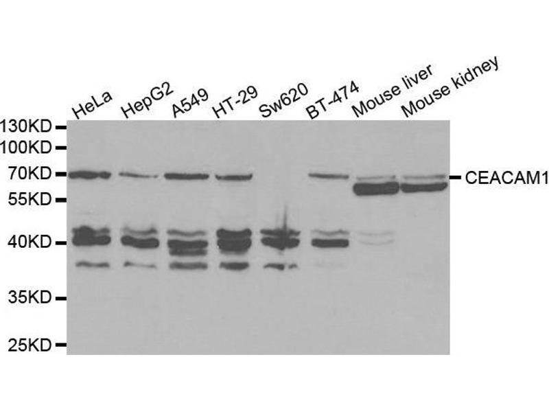 This gene encodes a member of the carcinoembryonic antigen (CEA) gene family, which belongs to the immunoglobulin superfamily. Two subgroups of the CEA family, the CEA cell adhesion molecules and the pregnancy-specific glycoproteins, are located within a 1.2 Mb cluster on the long arm of chromosome 19. Eleven pseudogenes of the CEA cell adhesion molecule subgroup are also found in the cluster. The encoded protein was originally described in bile ducts of liver as biliary glycoprotein. Subsequently, it was found to be a cell-cell adhesion molecule detected on leukocytes, epithelia, and endothelia. The encoded protein mediates cell adhesion via homophilic as well as heterophilic binding to other proteins of the subgroup. Multiple cellular activities have been attributed to the encoded protein, including roles in the differentiation and arrangement of tissue three-dimensional structure, angiogenesis, apoptosis, tumor suppression, metastasis, and the modulation of innate and adaptive immune responses. Multiple transcript variants encoding different isoforms have been reported, but the full-length nature of all variants has not been defined.,CEACAM1,BGP,BGP1,BGPI,Immunology & Inflammation,CD markers,Cardiovascular,Angiogenesis,CEACAM1