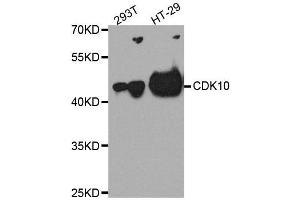The protein encoded by this gene belongs to the CDK subfamily of the Ser/Thr protein kinase family. The CDK subfamily members are highly similar to the gene products of S. cerevisiae cdc28, and S. pombe cdc2, and are known to be essential for cell cycle progression. This kinase has been shown to play a role in cellular proliferation and its function is limited to cell cycle G2-M phase. Multiple transcript variants encoding different isoforms have been found for this gene.,CDK10,PISSLRE,Epigenetics & Nuclear Signaling,Signal Transduction,Kinase,Cell Biology & Developmental Biology,Cell Cycle,CDK10
