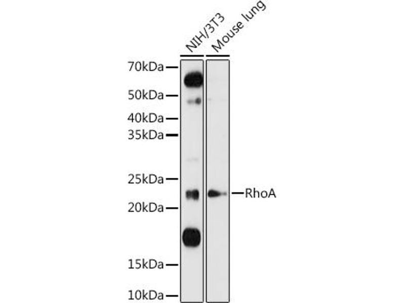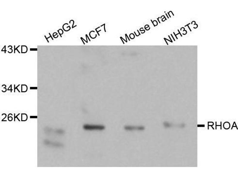 This gene encodes a member of the Rho family of small GTPases, which cycle between inactive GDP-bound and active GTP-bound states and function as molecular switches in signal transduction cascades. Rho proteins promote reorganization of the actin cytoskeleton and regulate cell shape, attachment, and motility. Overexpression of this gene is associated with tumor cell proliferation and metastasis. Multiple alternatively spliced variants have been identified.,ARH12,ARHA,RHO12,RHOH12,Rho,RHOA,RhoA,Cancer,Signal Transduction,G protein signaling,Signal Transduction,MAPK-JNK Signaling Pathway,Cell Biology & Developmental Biology,Cell Adhesion,Cytoskeleton,Microfilaments,Microtubules,Actins,TGF-b-Smad Signaling Pathway,Immunology & Inflammation,B Cell Receptor Signaling Pathway,RHOA