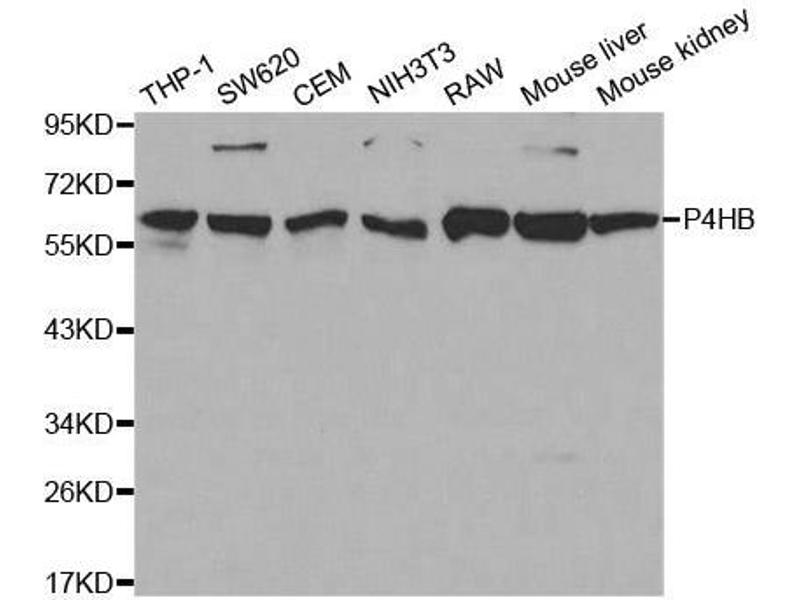 This gene encodes the beta subunit of prolyl 4-hydroxylase, a highly abundant multifunctional enzyme that belongs to the protein disulfide isomerase family. When present as a tetramer consisting of two alpha and two beta subunits, this enzyme is involved in hydroxylation of prolyl residues in preprocollagen. This enzyme is also a disulfide isomerase containing two thioredoxin domains that catalyze the formation, breakage and rearrangement of disulfide bonds. Other known functions include its ability to act as a chaperone that inhibits aggregation of misfolded proteins in a concentration-dependent manner, its ability to bind thyroid hormone, its role in both the influx and efflux of S-nitrosothiol-bound nitric oxide, and its function as a subunit of the microsomal triglyceride transfer protein complex.,P4HB,CLCRP1,DSI,ERBA2L,GIT,P4Hbeta,PDI,PDIA1,PHDB,PO4DB,PO4HB,PROHB,Epigenetics & Nuclear Signaling,RNA Binding,Cancer,Signal Transduction,Cell Biology & Developmental Biology,Cytoskeleton,Extracellular Matrix,Collagen,Endocrine & Metabolism,Lipid Metabolism,P4HB