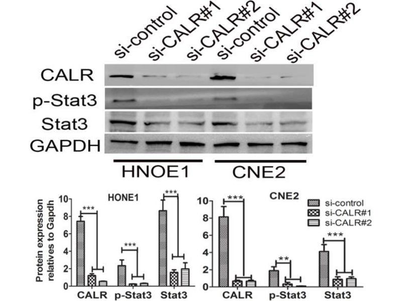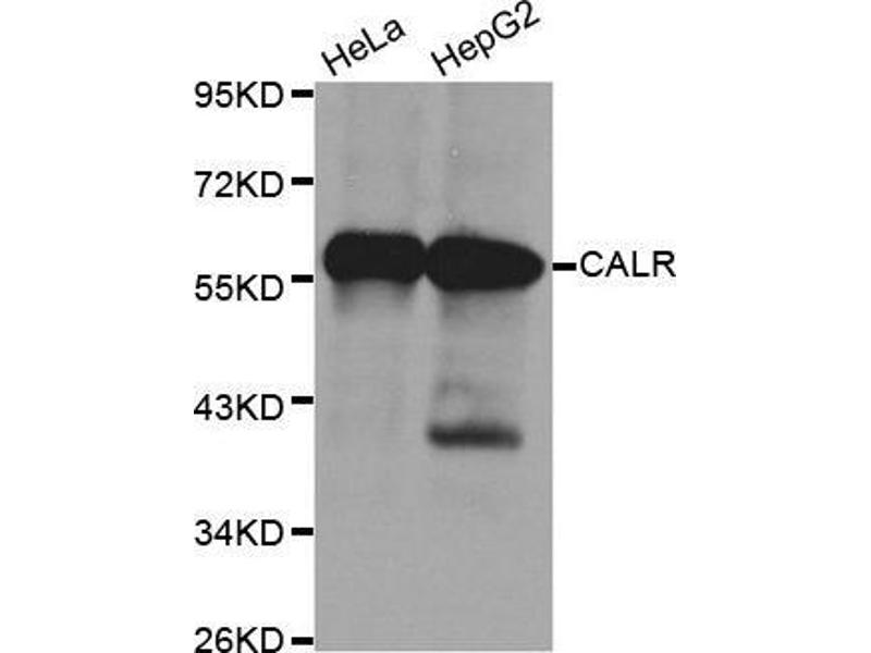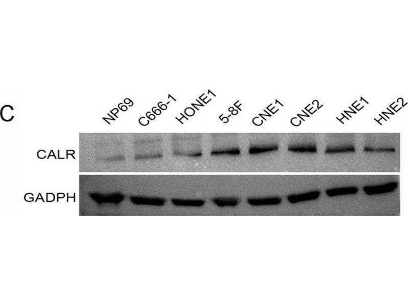 Calcium is a universal signaling molecule involved in many cellular functions such as cell motility, metabolism, protein modification, protein folding and apoptosis. Calcium is stored in the endoplasmic reticulum (ER), where it is buffered by calcium binding chaperones such as calnexin and calreticulin, and is released via the IP3 Receptor. Calreticulin also functions as an ER chaperone that ensures proper folding and quality control of newly synthesized glycoproteins. As such, calreticulin presumably does not alter protein folding but ensures proper timing for efficient folding and subunit assembly. Furthermore, calreticulin retains proteins in non-native conformation within the ER and targets them for degradation. Synonyms: CALR, CRT, FLJ26680, RO, SSA, cC1qR