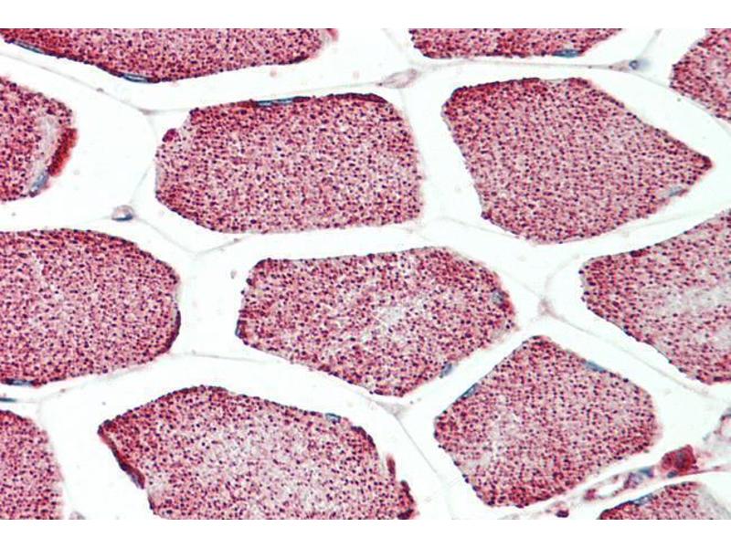 Immunohistochemistry: Paraffin embedded Human Skeletal Muscle. Recommended concentration: 5 μg/mL.