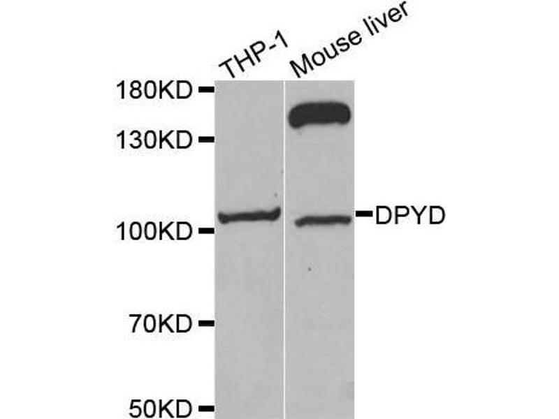 The protein encoded by this gene is a pyrimidine catabolic enzyme and the initial and rate-limiting factor in the pathway of uracil and thymidine catabolism. Mutations in this gene result in dihydropyrimidine dehydrogenase deficiency, an error in pyrimidine metabolism associated with thymine-uraciluria and an increased risk of toxicity in cancer patients receiving 5-fluorouracil chemotherapy. Two transcript variants encoding different isoforms have been found for this gene.,DPYD,DHP,DHPDHASE,DPD,Signal Transduction,Endocrine & Metabolism,Amino acid metabolism,DPYD