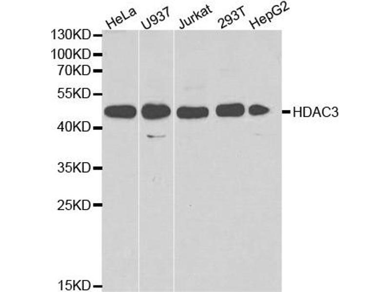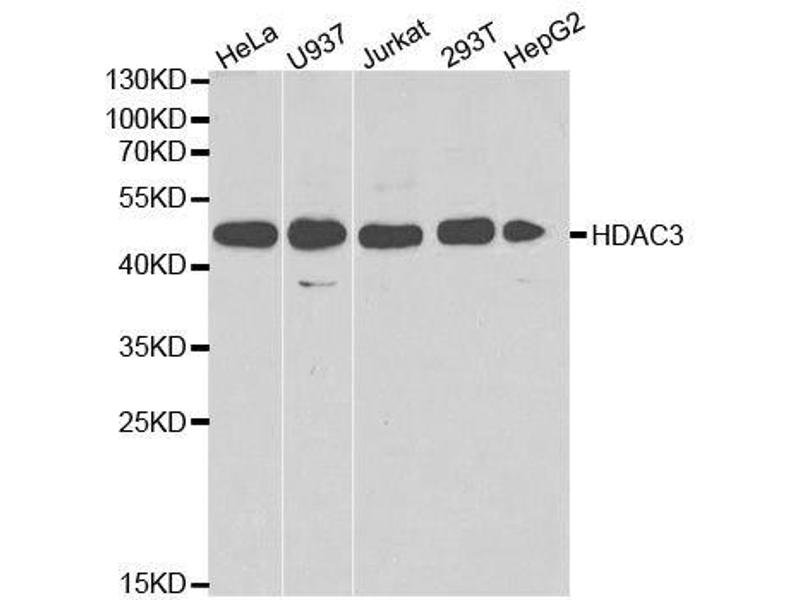 - Histones play a critical role in transcriptional regulation, cell cycle progression, and developmental events. Histone acetylation/deacetylation alters chromosome structure and affects transcription factor access to DNA. The protein encoded by this gene belongs to the histone deacetylase/acuc/apha family. It has histone deacetylase activity and represses transcription when tethered to a promoter. It may participate in the regulation of transcription through its binding with the zinc-finger transcription factor YY1. This protein can also down-regulate p53 function and thus modulate cell growth and apoptosis. This gene is regarded as a potential tumor suppressor gene.,HD3,RPD3,RPD3-2,HDAC3,Epigenetics & Nuclear Signaling,Nuclear Receptor Signaling,Cancer,Tumor suppressors,Signal Transduction,Cell Biology & Developmental Biology,Apoptosis,Cell Cycle,G1/S Checkpoint,Notch Signaling Pathway,Wnt/β-Catenin Signaling Pathway,Endocrine & Metabolism,Lipid Metabolism,Immunology & Inflammation,NF-kB Signaling Pathway,Stem Cells,Cardiovascular,Heart,Hypertrophy,Lipids,HDAC3
