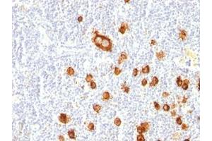 2. The prediluted format is supplied in a dropper bottle and is optimized for use in IHC. After epitope retrieval step (if required), drip mAb solution onto the tissue section and incubate at RT for 30 min.\. Flow Cytometry: 0.5-1 μg/million cells in 0.1ml,Immunofluorescence: 0.5-1 μg/mL,Immunohistochemistry (FFPE): 0.5-1 μg/mL for 30 min at RT (1),Prediluted format : incubate for 30 min at RT (2) -