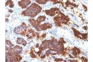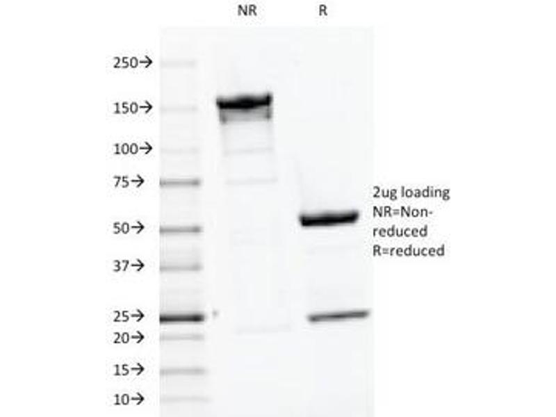 2. The prediluted format is supplied in a dropper bottle and is optimized for use in IHC. After epitope retrieval step (if required), drip mAb solution onto the tissue section and incubate at RT for 30 min.\. Flow Cytometry: 0.5-1 μg/million cells in 0.1ml,Immunofluorescence: 0.5-1 μg/mL,Immunohistochemistry (FFPE): 0.5-1 μg/mL for 30 min at RT (1),Prediluted format: incubate for 30 min at RT (2) -