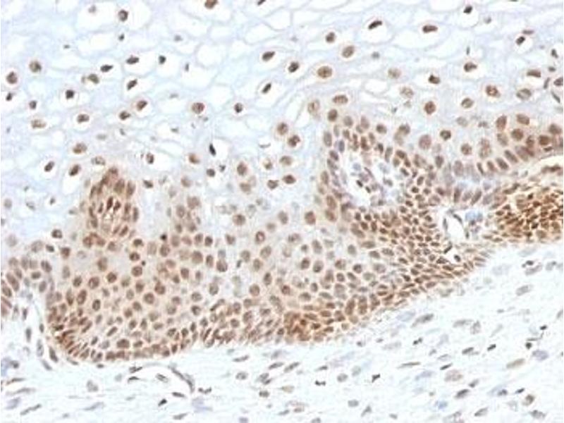 1. Staining of formalin-fixed tissues requires boiling tissue sections in 10 mM Tris with 1 mM EDTA, pH 9.0 or 10 mM Citrate buffer, pH 6.0, for 10-20 min followed by cooling at RT for 20 min