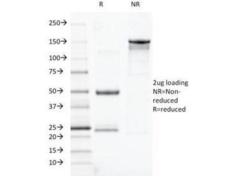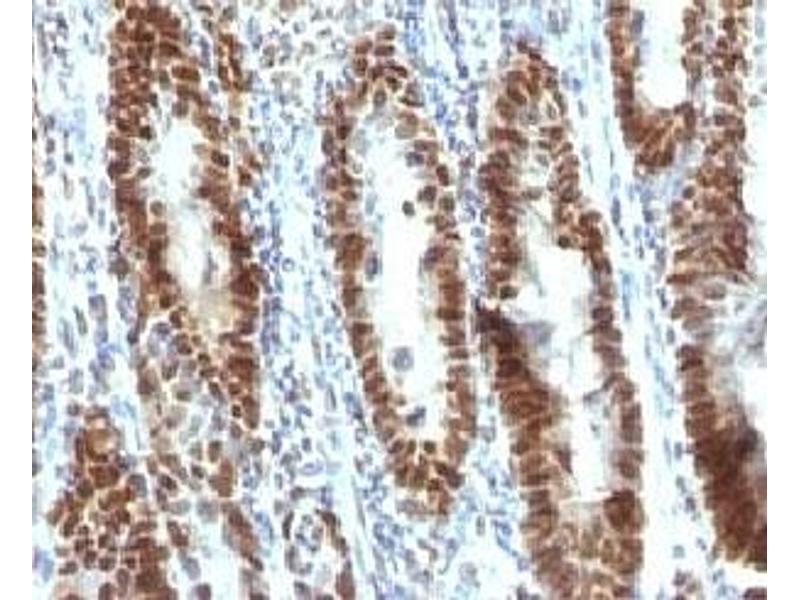 2. The prediluted format is supplied in a dropper bottle and is optimized for use in IHC. After epitope retrieval step (if required), drip mAb solution onto the tissue section and incubate at RT for 30 min.\. Flow Cytometry: 0.5-1 μg/million cells in 0.1ml,Immunofluorescence: 0.5-1 μg/mL,Immunohistochemistry (FFPE): 0.5-1 μg/mL for 30 min at RT (1),Prediluted format : incubate for 30 min at RT (2) -