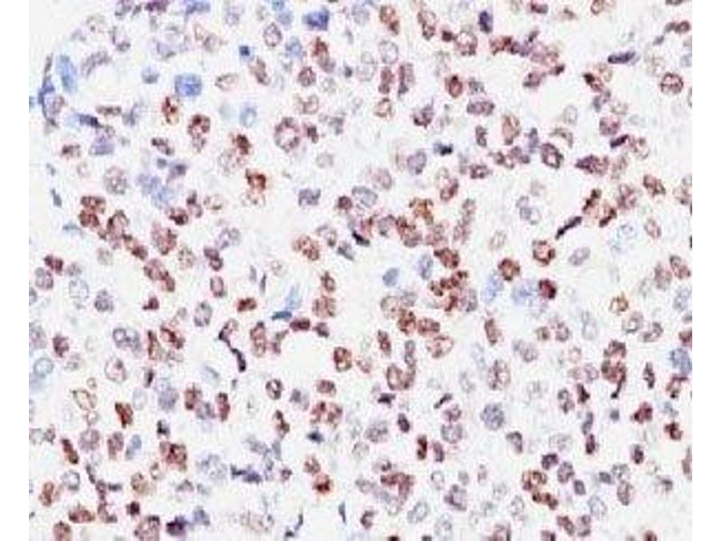 2. The prediluted format is supplied in a dropper bottle and is optimized for use in IHC. After epitope retrieval step (if required), drip mAb solution onto the tissue section and incubate at RT for 30 min.\. Flow Cytometry: 0.5-1 μg/million cells in 0.1ml,Immunofluorescence: 0.5-1 μg/mL,Immunohistochemistry (FFPE): 0.5-1 μg/mL for 30 min at RT (1),Prediluted format : incubate for 30 min at RT (2) -