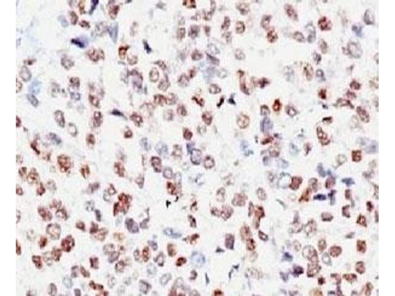 2. The prediluted format is supplied in a dropper bottle and is optimized for use in IHC. After epitope retrieval step (if required), drip mAb solution onto the tissue section and incubate at RT for 30 min.\. Flow Cytometry: 0.5-1 μg/million cells in 0.1ml,Immunofluorescence: 0.5-1 μg/mL,Immunohistochemistry (FFPE): 0.5-1 μg/mL for 30 min at RT (1),Prediluted format : incubate for 30 min at RT (2) -