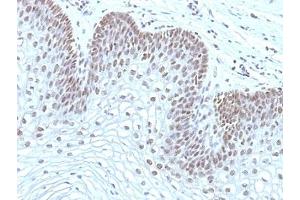 2. The prediluted format is supplied in a dropper bottle and is optimized for use in IHC. After epitope retrieval step (if required), drip mAb solution onto the tissue section and incubate at RT for 30 min.\. Flow Cytometry: 0.5-1 μg/million cells in 0.1ml,Immunofluorescence: 1-2 μg/mL,Western blot: 0.5-1 μg/mL,Immunohistochemistry (FFPE): 0.5-1 μg/mL for 30 min at RT (1),Prediluted format : incubate for 30 min at RT (2) -