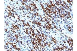 2. The prediluted format is supplied in a dropper bottle and is optimized for use in IHC. After epitope retrieval step (if required), drip mAb solution onto the tissue section and incubate at RT for 30 min.\. Flow Cytometry: 0.5-1 μg/million cells in 0.1ml,Immunofluorescence: 0.5-1 μg/mL,Immunohistochemistry (FFPE): 0.5-1 μg/mL for 30 minutes at RT (1),Prediluted format: incubate for 30 min at RT (2) -