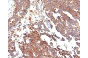 2. The prediluted format is supplied in a dropper bottle and is optimized for use in IHC. After epitope retrieval step (if required), drip mAb solution onto the tissue section and incubate at RT for 30 min.\. Immunofluorescence: 1-2 μg/mL,Immunohistochemistry (FFPE): 1-2 μg/mL for 30 min at RT (1),Prediluted format : incubate for 30 min at RT (2) -