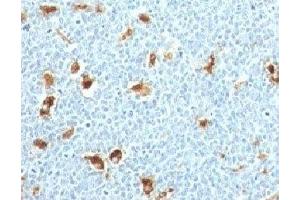 Recognizes a 14  kDa protein, identified as S100A9 (also known as Calgranulin B or MRP14), expressed by granulocytes, monocytes and by tissue macrophages. The protein encoded by this gene is a member of the S100 family of proteins containing 2 EF-hand calcium-binding motifs. S100 proteins are localized in the cytoplasm and/or nucleus of a wide range of cells, and involved in the regulation of a number of cellular processes such as cell cycle progression and differentiation. Altered expression of this protein is associated with the disease cystic fibrosis. This mAb reacts with neutrophils, monocytes and macrophages, and has been shown as an important marker for identifying macrophages in tissue sections. Among cells that are now recognized as macrophages are histiocytes, Kupffer cells, osteoclasts, microglial cells, synovial type A cells, interdigitating cells, and Langerhans cells (in normal tissues) and epithelioid cells and Langerhans-type and foreign-body-type multinucleated giant cells (in inflamed tissues).
