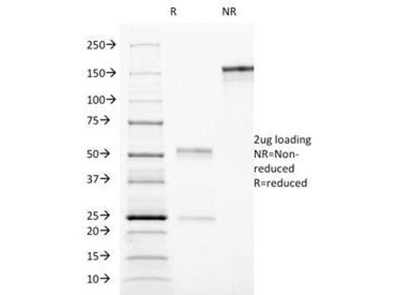 - Recognizes a protein of 18-35 kDa, identified as CD90 (also known as Thy1). CD90 is a member of the immunoglobulin superfamily. It may contribute to inhibition of proliferation/differentiation of hematopoietic stem cells and neuron memory formation in the CNS. It consists of a single Ig domain (112 amino acids, 25-35 kDa) inserted into the cell membrane via a GPI anchor. Expressed by hematopoietic stem cells and neurons in all species studied. Its highly expressed in connective tissue and various fibroblast and stromal cell lines, expressed on all thymocytes and peripheral T cells in mice, but in humans expressed only on small % fetal thymocytes, 10-40 % of CD34+ cells in bone marrow, and <1 % of CD3+CD4+ lymphocytes in peripheral circulation. It is also expressed by human lymph node HEV endothelium but not other endothelia. Lastly, it is expressed by a limited number of lymphoblastoid and leukemic cell lines