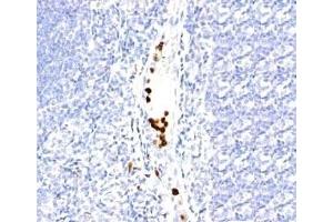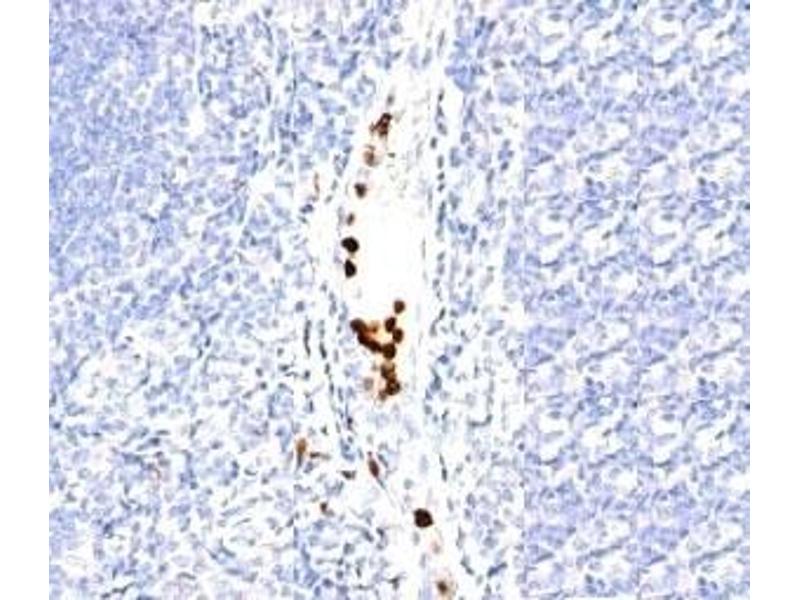 - Recognizes an unidentified antigen in the cytoplasm of mature granulocytes. It shows no reactivity with any other cell type in human tissues. Markers of myeloid cells are useful in the identification of different levels of cellular differentiation. SPM250 Ab reacts with early precursor and mature forms of human myeloid cells. This mAb is useful for the detection of myeloid leukemias and granulocytic sarcomas. It can be used as a marker of granulocytes in normal tissues or inflammatory processes.