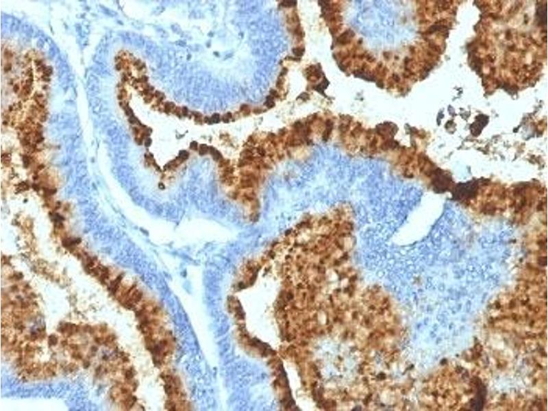 1. Staining of formalin-fixed tissues requires boiling tissue sections in 10 mM Citrate buffer, pH 6.0, for 10-20 min followed by cooling at RT for 20 minutes