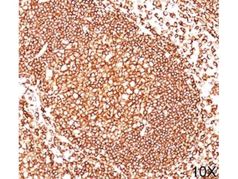 - This antibody cocktail contains an antibody which binds to all CD45 leukocyte common antigen (LCA) family isoforms (clone 2B11), and an antibody specific to the CD45RB isoform (clone PD7/26). CD45 is expressed on hematopoietic cell lines but absent on non-hematopoietic cell lines, normal and malignant non-hematopoietic tissues. The intracellular portions of the CD45 isoforms have protein phosphatase activity and are involved in regulation of transmembrane signals. antibody to CD45 is useful in differential diagnosis of lymphoid tumors from non-hematopoietic undifferentiated neoplasms. A positive result with this antibody cocktail is highly indicative of lymphoid or myeloid origin. Certain types of lymphoid neoplasms may lack CD45 (Hodgkin lymphoma, some T-cell lymphomas, and some leukemias) so its absence does not rule out a hematolymphoid tumor. This antibody cocktail detects CD45 expressed almost exclusively by cells of hematopoietic lineage and is present in most benign and malignant lymphocytes as well as plasma cell precursors.