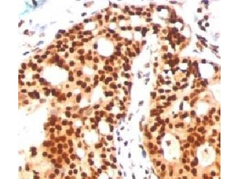 1. Staining of formalin-fixed tissues requires boiling tissue sections in 10 mM citrate buffer, pH 6.0, for 10-20 min followed by cooling at RT for 20 minutes.