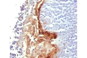 1. Staining of formalin-fixed tissues is enhanced by digestion with trypsin Protease XXV (Sigma) at 1 mg/mL PBS for 5 min at 37 °C.