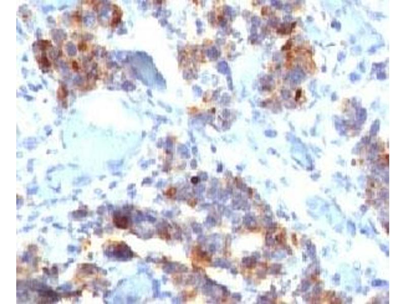 1. Staining of formalin-fixed tissues requires boiling tissue sections in 10 mM citrate buffer, pH 6.0, for 10-20 min followed by cooling at RT for 20 minutes.