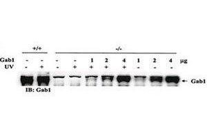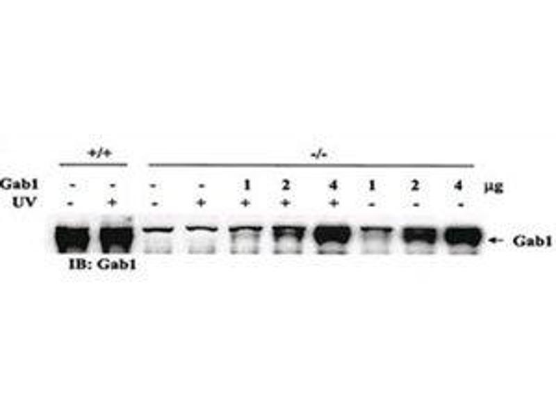 Titration of the Gab1 antibody may be required due to differences in protocols and secondary/substrate sensitivity.\. Western blot: 1:1000