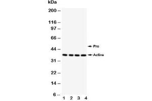 The stated application concentrations are suggested starting points. Titration of the Caspase-12 antibody may be required due to differences in protocols and secondary/substrate sensitivity.\. Western blot: 0.5-1 μg/mL,IHC (Paraffin): 0.5-1 μg/mL