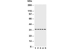 The stated application concentrations are suggested starting points. Titration of the Caspase-6 antibody may be required due to differences in protocols and secondary/substrate sensitivity.\. Western blot: 0.5-1 μg/mL,IHC (Paraffin): 0.5-1 μg/mL