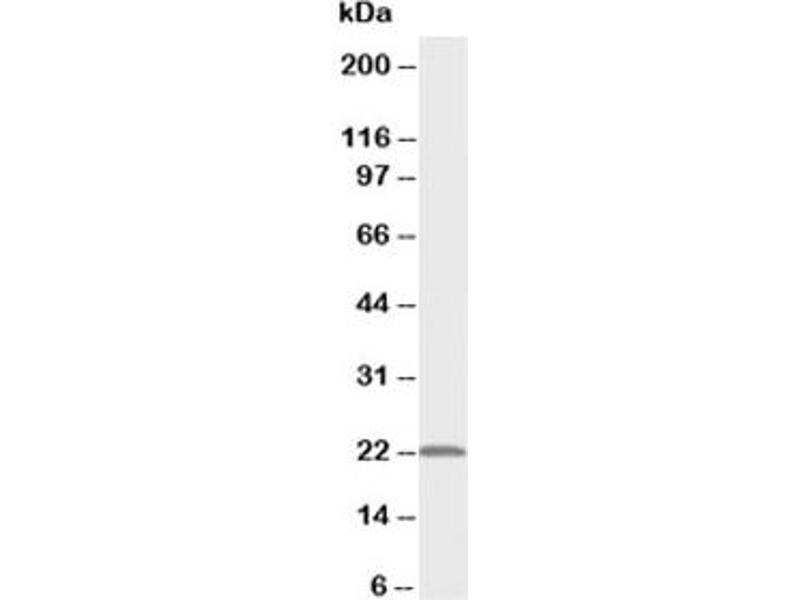 An amino acid sequence from the middle region of human PMVK (EQSRQQRGWVFTPGVDD) was used as the immunogen for this PMVK antibody (100% homologous in human and mouse).