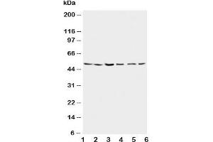 The stated application concentrations are suggested starting amounts. Titration of the Presenilin 2 antibody may be required due to differences in protocols and secondary/substrate sensitivity.\. Western blot: 0.5-1 μg/mL,IHC (Paraffin): 0.5-1 μg/mL,IHC (Frozen): 0.5-1 μg/mL