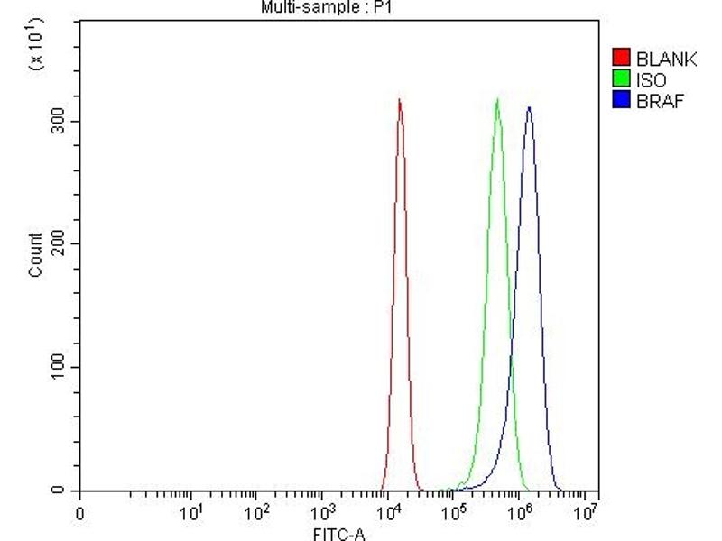 - Anti-B Raf/BRAF Antibody (ABIN3043761). Tested in Flow Cytometry, IHC, WB applications. This antibody reacts with Human, Mouse, Rat. This is a premium antibody that guarantees superior quality, high affinity, and strong signals with minimal background in Western blot applications.