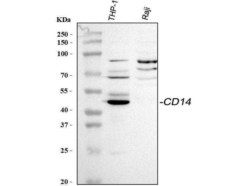 - Anti-CD14 Antibody (ABIN3044565). Tested in IHC, WB applications. This antibody reacts with Human. This is a premium antibody that guarantees superior quality, high affinity, and strong signals with minimal background in Western blot applications.